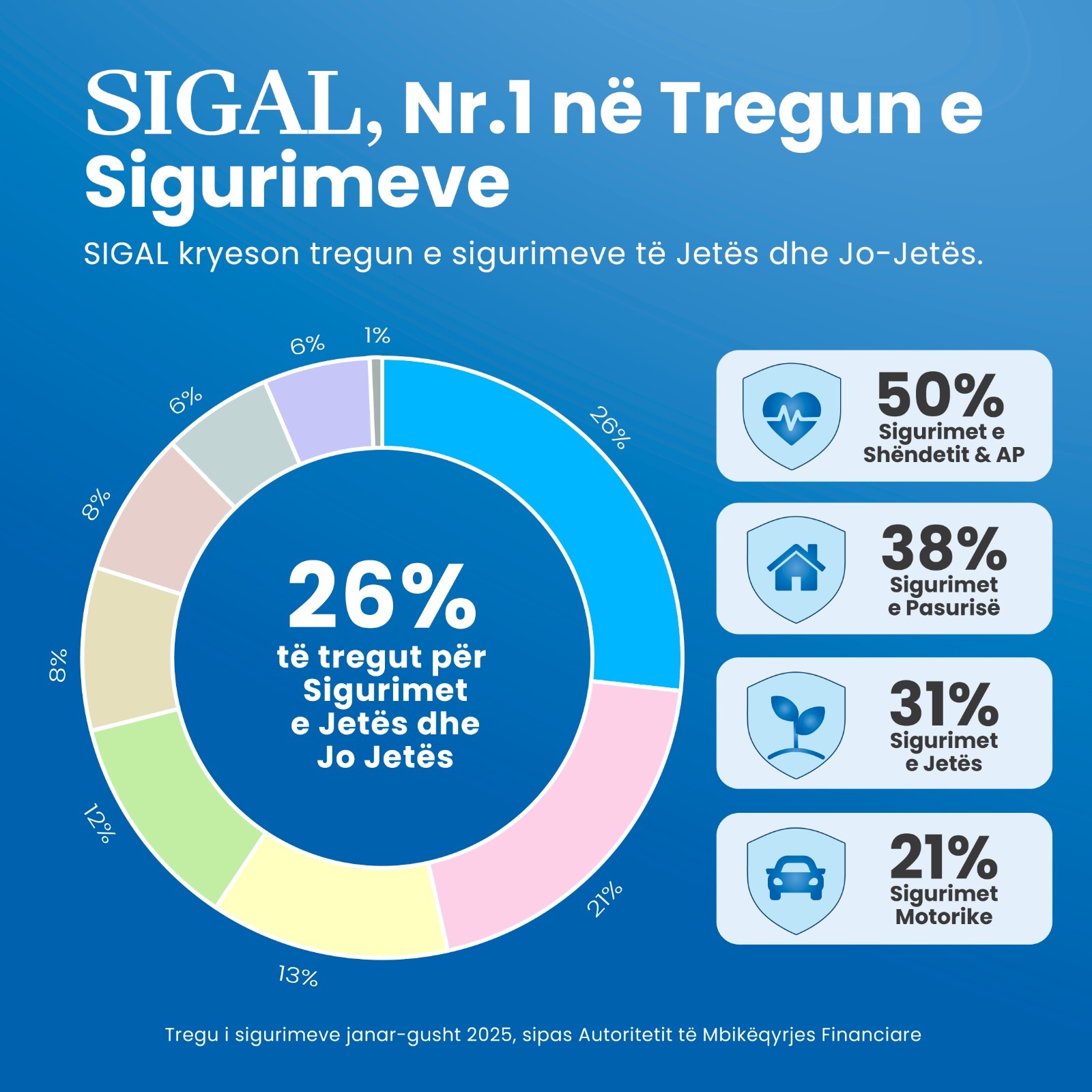 Kompania SIGAL Insurance Group konfirmon edhe njëherë pozicionin e saj si kompania më e madhe dhe më e besuar në tregun shqiptar dhe rajonal të sigurimeve, sipas raportit 9-mujor të vitit 2025 të Autoritetit të Mbikëqyrjes Financiare (AMF).