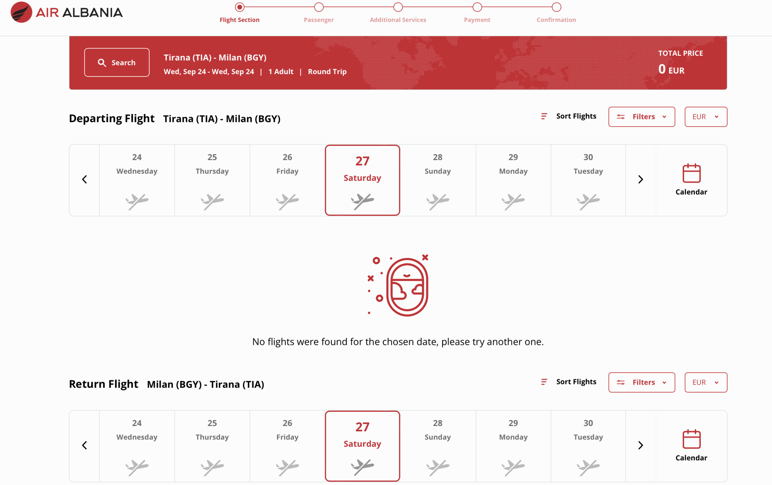 Ky avion kryen vetëm linjën Tiranë–Stamboll, me tre fluturime në ditë, ndërsa të gjitha destinacionet e tjera që kompania kishte pasqyruar më herët në sistemin e saj, si Bergamo, Milano, Bolonja dhe disa linja të tjera evropiane, janë pezulluar plotësisht. /skyweb.al