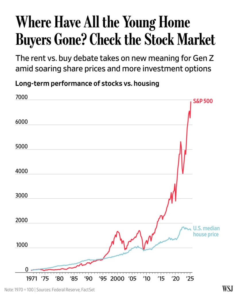 Në të njëjtën kohë, hendeku mes kostos së zotërimit të një shtëpie dhe qirasë është zgjeruar ndjeshëm, duke forcuar argumentin se jetesa me qira mund të jetë më e leverdishme. Ky ndryshim po ndodh ndërkohë që brezi i ri është tërhequr nga investimet përmes aplikacioneve si Robinhood Markets, rritjes së interesit për kriptovaluta dhe “meme stocks” që qarkullojnë në platformat online.