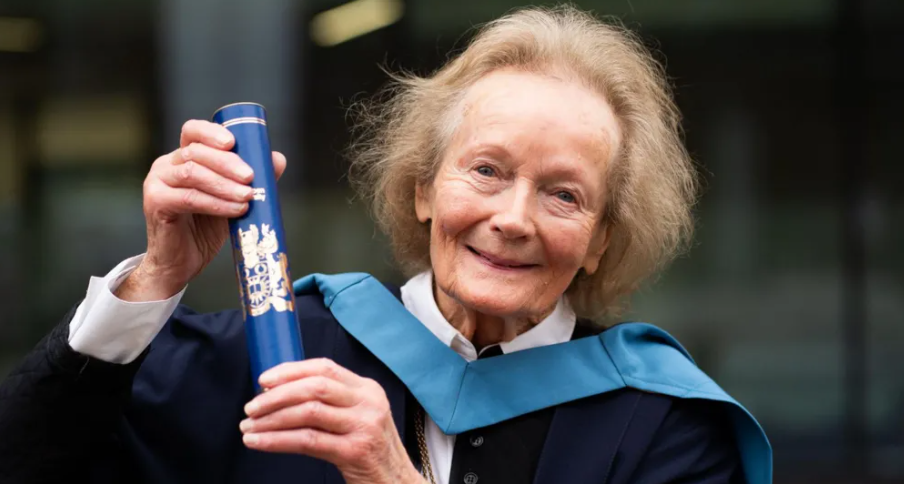 90-vjeçarja ishte më e moshuara ndër më shumë se 300 të diplomuar në ceremoninë e universitetit që u mbajt në Belfast.