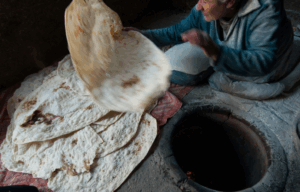 Përgatitja e saj është një akt komunitar: gratë mblidhen për të rrotulluar dhe shtrirë brumin mbi jastëk të mbushur me kashtë, përpara se ta godasin me mjeshtëri në muret e furrës konike tonir. Brenda disa sekondash, petët marrin ngjyrë të artë e flluska delikate.
