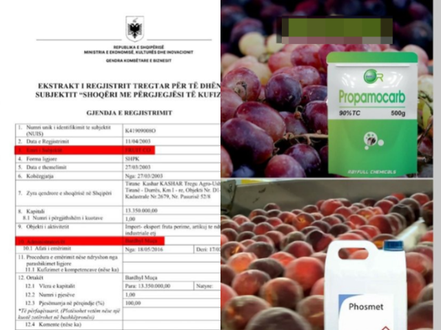 Burime për “Ora investigim” bëjnë me dije se subjekti që futi në Shqipëri pjeshkët dhe rrushin me pesticidet e rrezikshme është “FRUIT CO”, me administrator z. Bardhyl Muça.