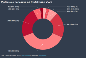 Ndërsa, në Vlorë totali prej 52,296 njësive të banuara është i ndarë sipas grafikut të mposhtëm.