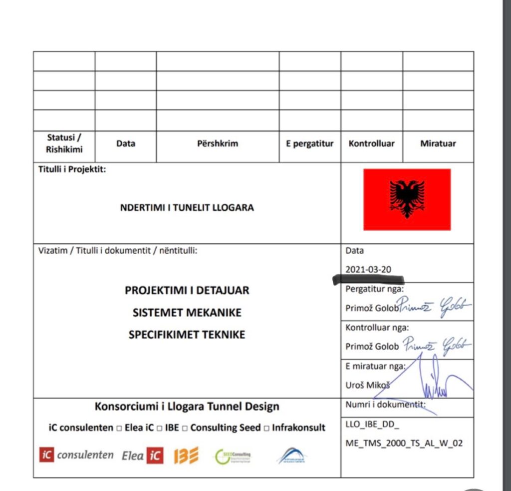 Në këtë procedurë është hedhur dhe Projekti Teknik i tunelit.