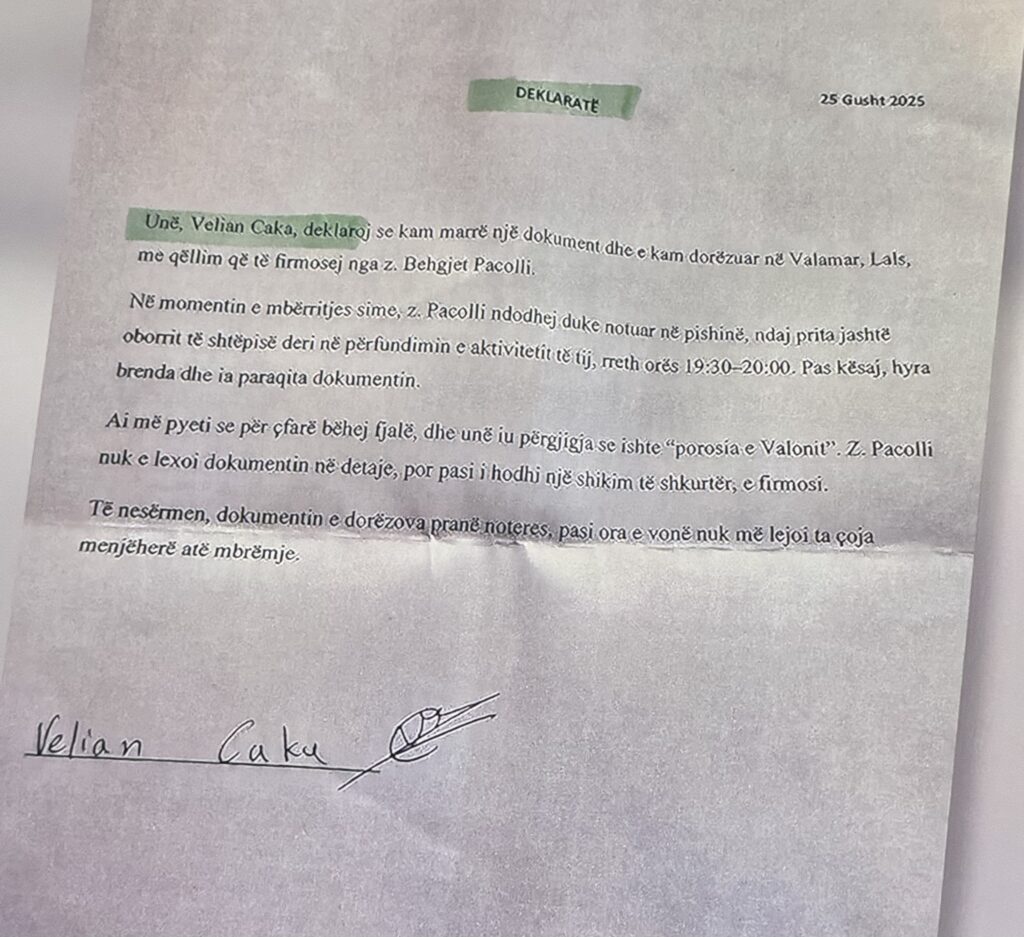 Familja Pacolli është kujdesur të marrë edhe një dëshmi nga shoferi, i cili konfirmon se Behgjet Pacolli firmosi pa e lexuar dokumentin.