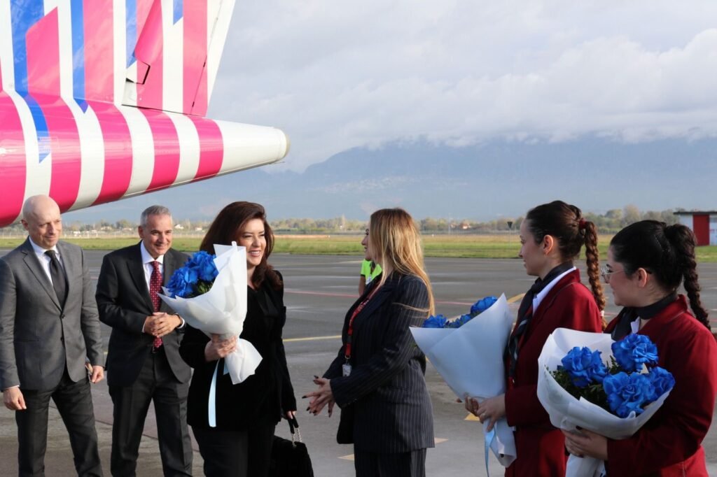 Pas mirëseardhjes së ngrohtë dhe shkëmbimit të përshëndetjevemes ekipeve, u zhvillua ceremonia e prerjes së shiritit, qësimbolizoi hapjen zyrtare të linjës së re ajrore.