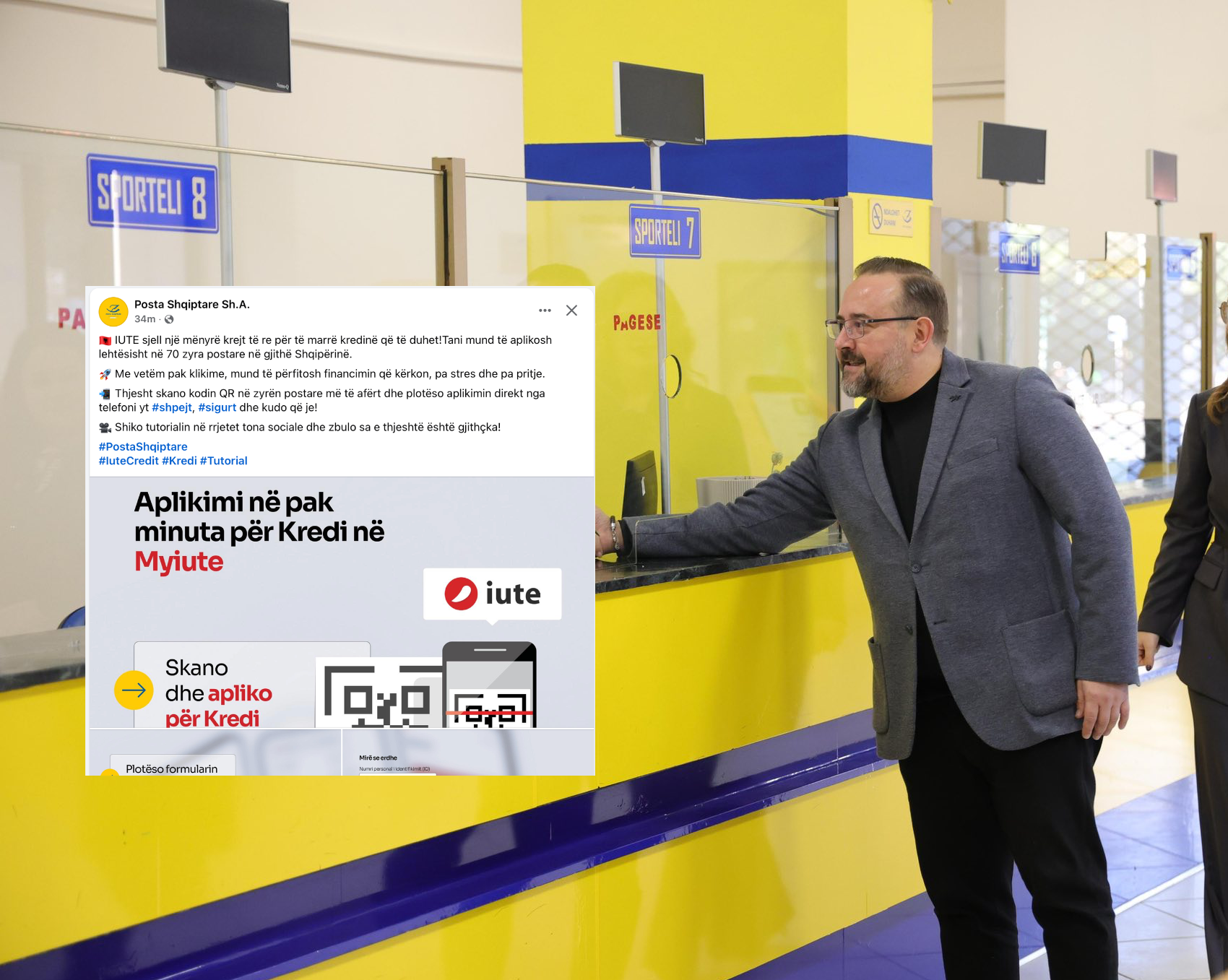 Në një postim në rrjetet sociale, Posta Shqiptare njoftoi se qytetarët mund të aplikojnë për kredi të Iute Credit drejtpërdrejt në sportelet e saj, duke e paraqitur këtë si një “mundësi të lehtë” për t’u financuar.