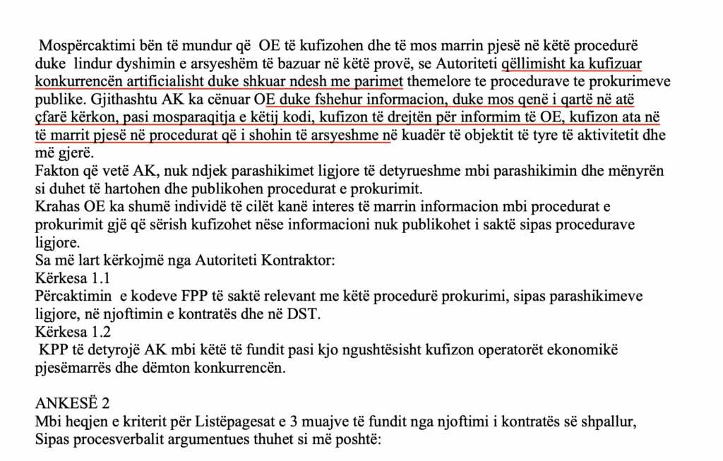 Në ankesën e fundit të depozituar më 14 nëntor, Intech+ deklaron se moszbatimi i vendimit të KPP përbën shkelje të ligjit, duke lënë të hapur dyshimin se fituesi është paracaktuar, pasi vetëm një kompani plotëson kriteret e vendosura.