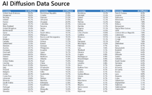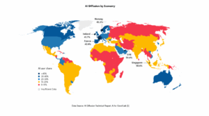Microsoft nënvizon se niveli i zhvillimit ekonomik është faktor kyç në shtrirjen e inteligjencës artificiale. Vendet e Global North arrijnë një mesatare adoptimi prej rreth 23%, kundrejt vetëm 13% në Global South. Furnizimi i qëndrueshëm me energji, interneti cilësor dhe infrastruktura kompjuterike e fortë janë elementët kryesorë që mundësojnë përhapje më të shpejtë të AI.