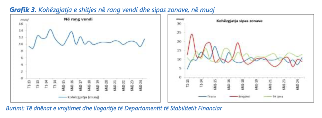 Tendenca është edhe më e theksuar në Tiranë, ku ky tregues është rritur nga 7.1 muaj në 11.1 muaj, duke kaluar mbi mesataren afatgjatë prej 10 muajsh. Ky ngadalësim reflekton qartë ngopjen e tregut të ndërtimit në kryeqytet, ku oferta e apartamenteve ka tejkaluar ritmin e kërkesës reale.