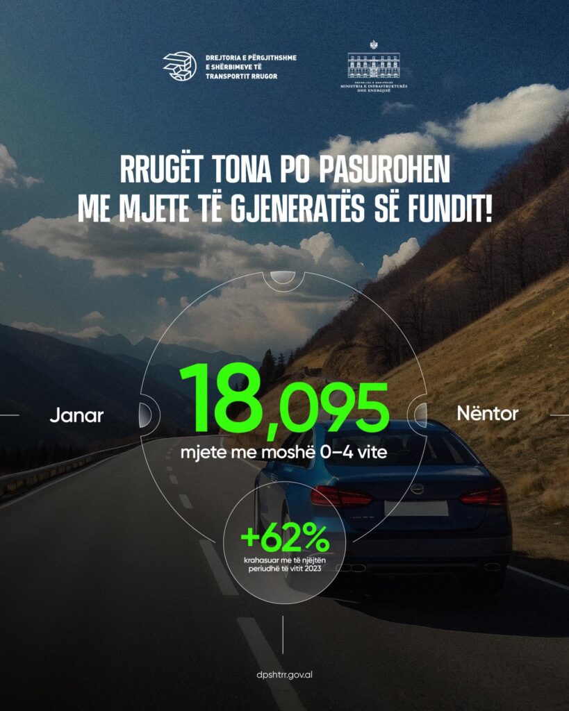 Gjatë periudhës janar–nëntor 2025 janë regjistruar gjithsej 18,095 mjete me moshë nga 0 deri në 4 vite, duke shënuar një rritje prej 62 për qind krahasuar me të njëjtën periudhë të vitit 2023.