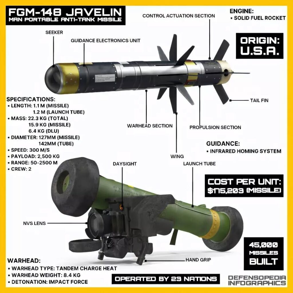 “Javelin” konsiderohet një nga armët kundërtanke më të sofistikuara në botë. Sistemi bartet në supe nga një ushtar i vetëm dhe funksionon me parimin “zjarr dhe harro”, që do të thotë se pas lëshimit raketa ndjek objektivin në mënyrë automatike, pa pasur nevojë për ndërhyrje të mëtejshme nga operatori. Kjo i mundëson ushtarit të largohet menjëherë në mbulim, duke rritur ndjeshëm mbijetesën në fushëbetejë.