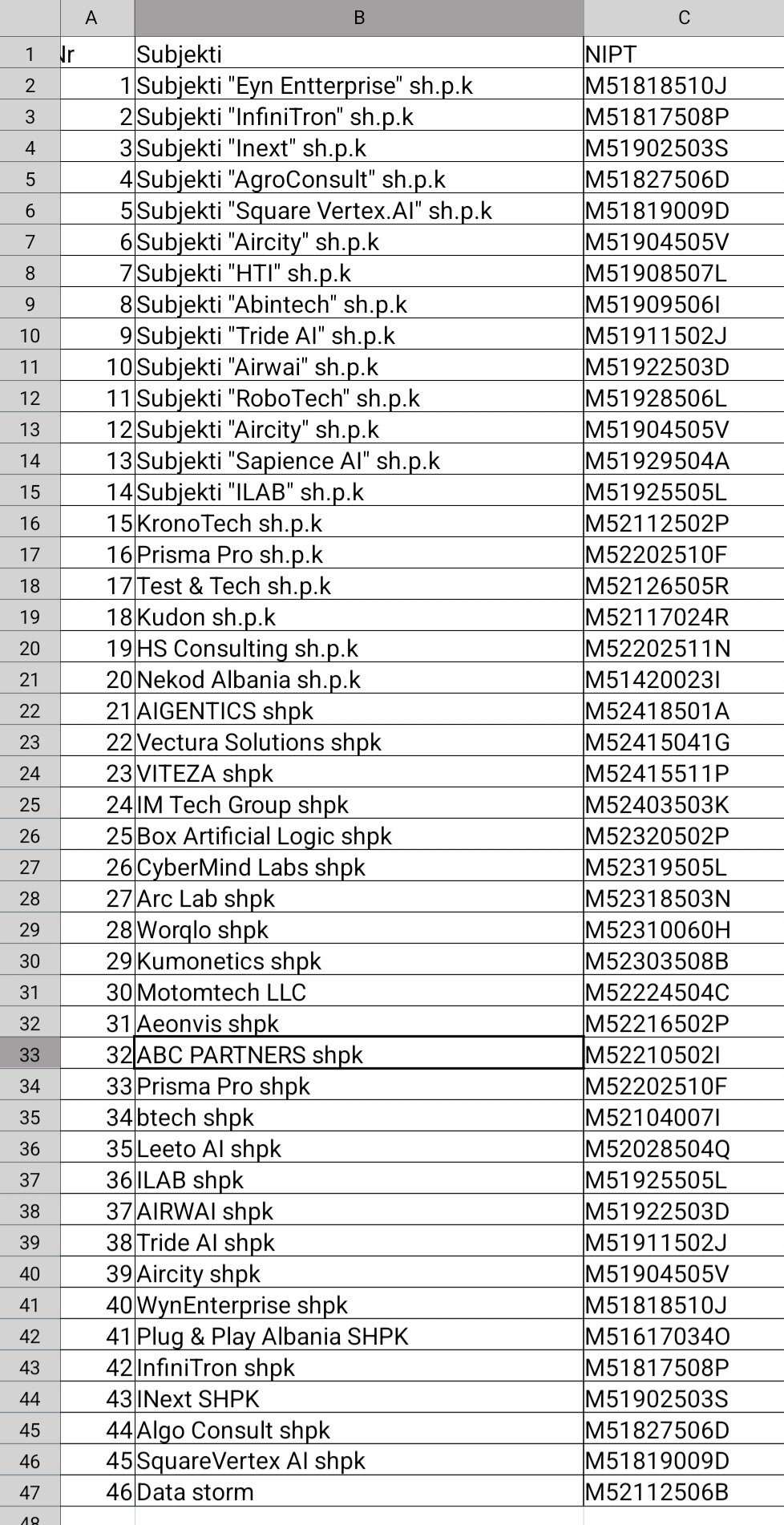 LISTA ME KOMPANITË E REGJISTRUARA NË DURANA TECH PARK