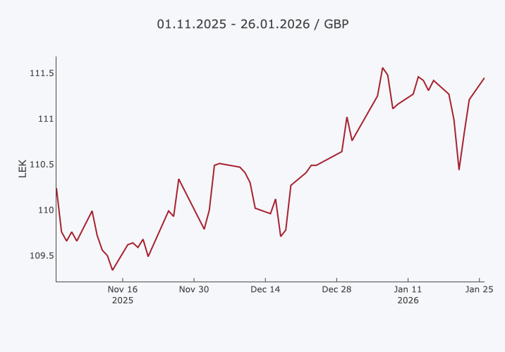 Në të njëjtin drejtim është lëvizur edhe paundi britanik. Ai e ka nisur javën me kursin 111.45 lekë, nga 111.21 lekë që ishte në fund të javës së kaluar, duke reflektuar një tendencë të lehtë rritëse.