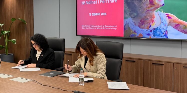 Kastrati Group, një nga grupet më të mëdha dhe më të konsoliduara tëbiznesit në Shqipëri, dhe Save the Children in Albania, një organizatëudhëheqëse globale për të drejtat e fëmijëve, kanë nënshkruar sot njëMemorandum Bashkëpunimi njëvjeçar që synon të forcojë mbrojtjen e fëmijëve në nevojë, të mbështesë përfshirjen sociale dhe të promovojënjë shoqëri më të drejtë dhe gjithëpërfshirëse për çdo fëmijë nëShqipëri.