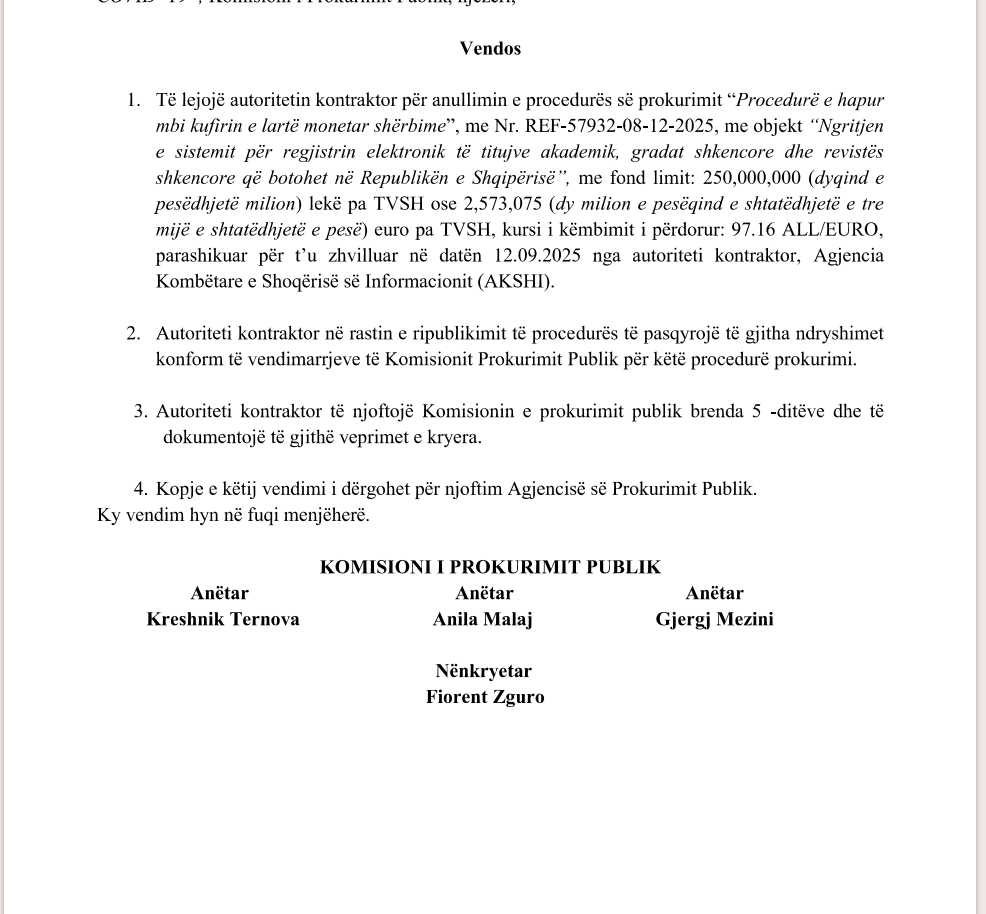 Tmerri nga SPAK-u dhe intrigat mes kompanive me ankesa të vazhdueshme bllokojnë tenderin 2.5 mln euro të AKSHI-t për titujt akademikë