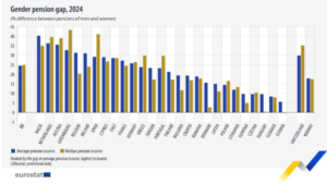 Në vitin 2024, pensioni mesatar për gratë 65 vjeç e lart në Bashkimin Europian ishte 24.5% më i ulët se ai i burrave.