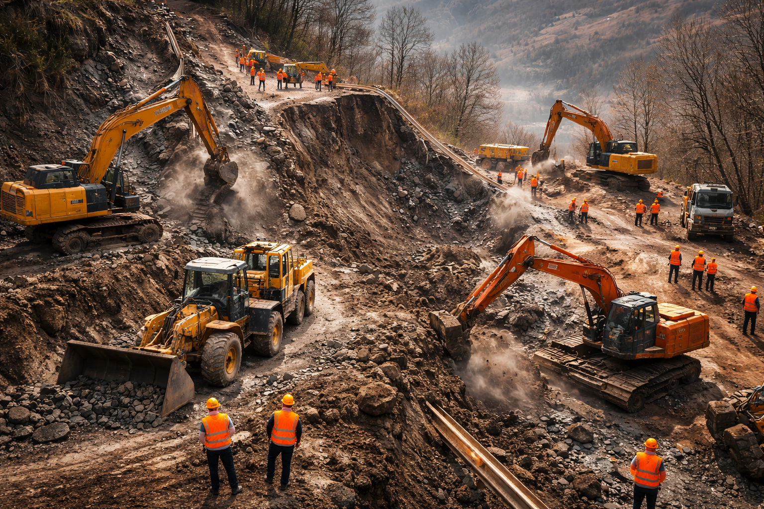 Aktualisht ekipet janë të angazhuara në pastrimin e masave të dherave në të dy krahët e rrugës ekzistuese, duke krijuar kushtet për vendosjen e sondave që do të mundësojnë studimin e detajuar gjeologjik dhe vlerësimin e qëndrueshmërisë së terrenit pas ngjarjes.