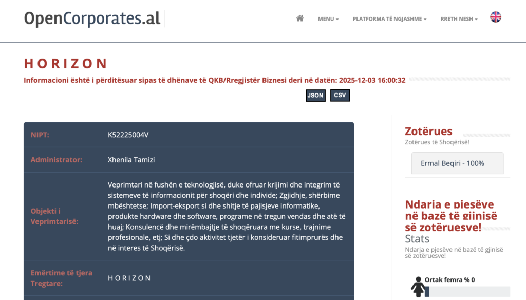 Xhenila Tamizi, administratore e kompanisë H O R I Z O N të Ermal Beqirit, e konsideruar nga hetuesit si një nga personat kyç në skemën financiare që lidhet me biznesmenin në arrati, është paraqitur këtë të enjte në Prokurorinë e Posaçme për të dhënë shpjegime mbi një sërë transaksionesh dhe pasurish të dyshuara.