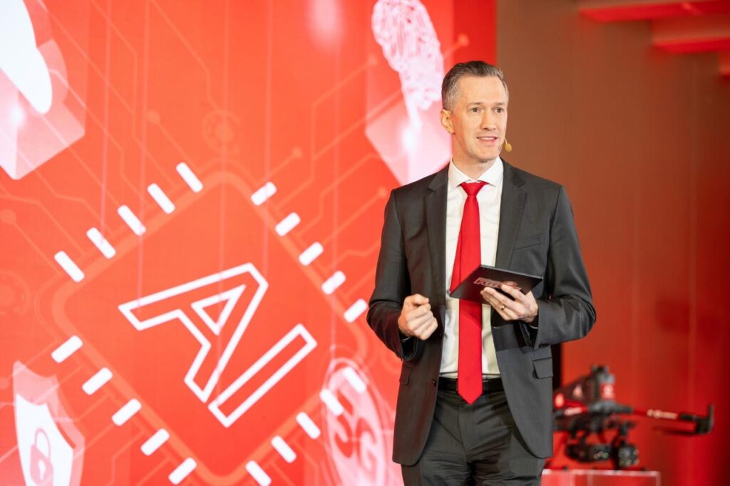 Duke nënvizuar dedikim e Vodafone, CEO i Vodafone Albania, Balázs Révész, nënvizoi rolin esencial të infrastrukturës nëzhvillimin e AI.“AI nuk qëndron në re. Ai funksionon përmes rrjeteve, bëhet i mundur nga rrjetëzimi dhe energjia, dhe përfundimisht mbështetet tek besimi.”– tha CEO i Vodafone Albania.