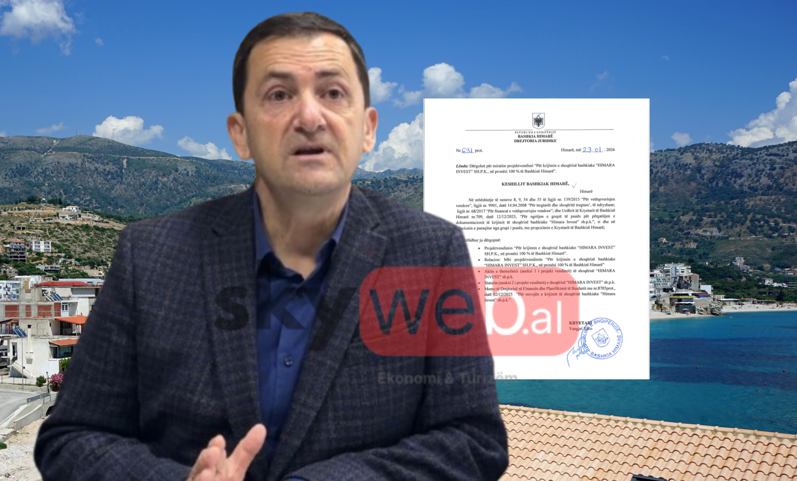 Një burim zyrtar pranë stafit të Vangjel Tavos, i tha Skyweb.al përmes telefonit se vendimi për ngritjen e shoqërisë “Himara Invest” sh.p.k. nuk ka kaluar ende në Këshillin Bashkiak, pikërisht për shkak të reagimeve të forta që shkaktoi projekti pas raportimeve mediatike.