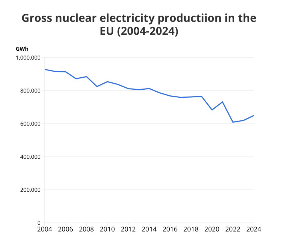 Sipas të dhënave më të fundit, energjia bërthamore përbën rreth 12% të miksit energjetik të BE-së, ndërsa vetëm 12 shtete anëtare prodhojnë energji nga kjo burim. Në vitin 2024, këto vende gjeneruan rreth 649 mijë gigavat-orë energji elektrike, një rritje me 4.8% krahasuar me një vit më parë.