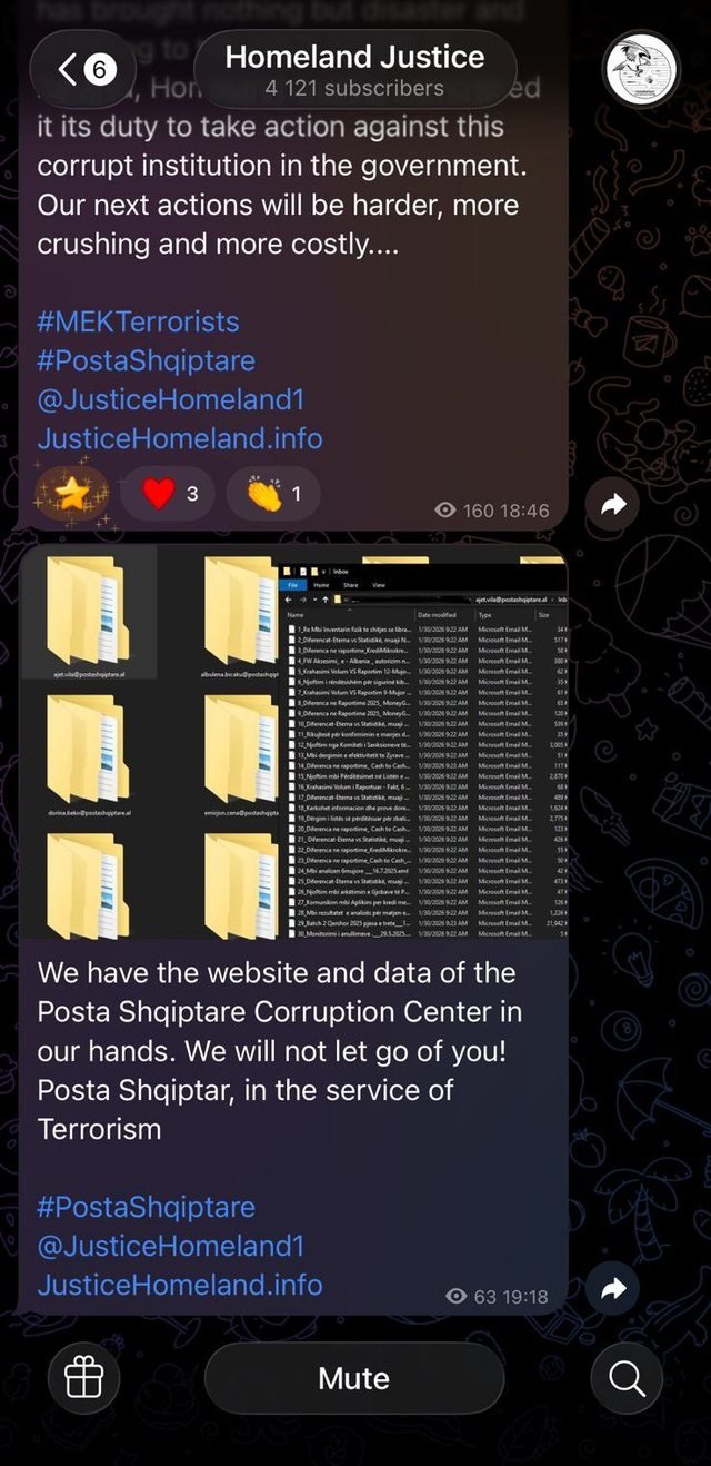 Ndërkohë, gjatë ditës së sotme, grupi i hakerave “Homeland Justice” ka njoftuar për një sulm ndaj databazës së Postës Shqiptare, duke pretenduar se kanë marrë në kontroll të gjitha të dhënat që lidhen me këtë institucion.