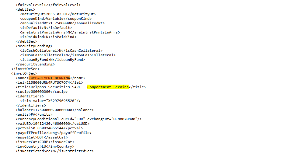 Bazuar në dokumentet zyrtare të cilat janë publikuar në EDGAR, e cila operon nën ombrellën e agjencisë qeveritare amerikane SEC, ky fond ndërkombëtar ka një bilanc prej 17.5 milionë dollarë të lidhur me “Compartment Bernina”.