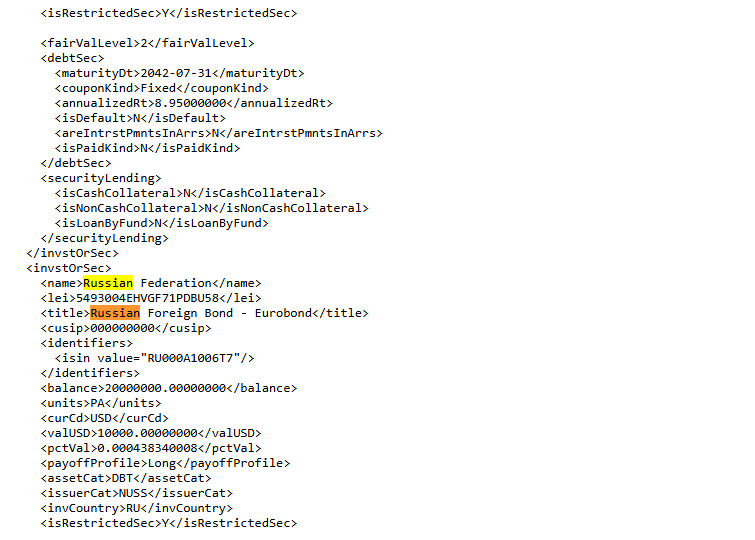 Të dhënat publike pranë kësaj agjencie dëshmojnë se fondi “GMO Emerging Country Debt Fund”, në të cilin Bernina posedon 17.5 milionë dollarë amerikanë letra me vlerë, mban obligacione të emetuara drejtpërdrejt edhe nga shteti rus.