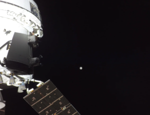 Fotot e realizuara nga brenda kapsulës Orion janë zhvendosur nga fokusimi vetëm te pamjet e ndritshme të Tokës drejt përqendrimit te Hëna, ndërsa misioni i afrohet gjithnjë e më shumë saj. Sipas NASA-s, ekuipazhi ka kaluar më shumë se gjysmën e rrugës drejt Hënës dhe fluturimi pranë saj pritet të ndodhë të hënën.