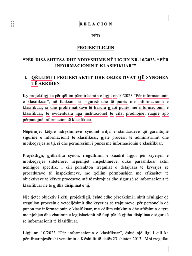 Sipas relacionit shpjegues, ndryshimet synojnë rritjen e standardeve të sigurisë dhe përafrimin me legjislacionin e Bashkimit Europian dhe NATO-s. Megjithatë, disa prej dispozitave të reja prekin drejtpërdrejt mënyrën se si kontrollohet dhe administrohet informacioni sekret në vend. /skyweb.al
