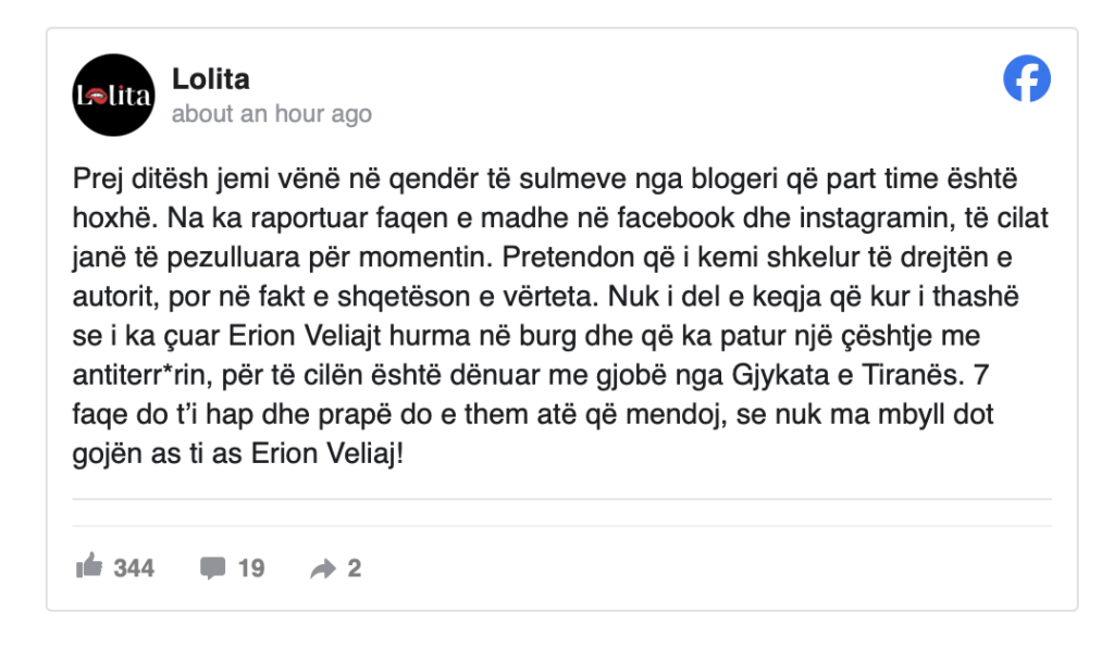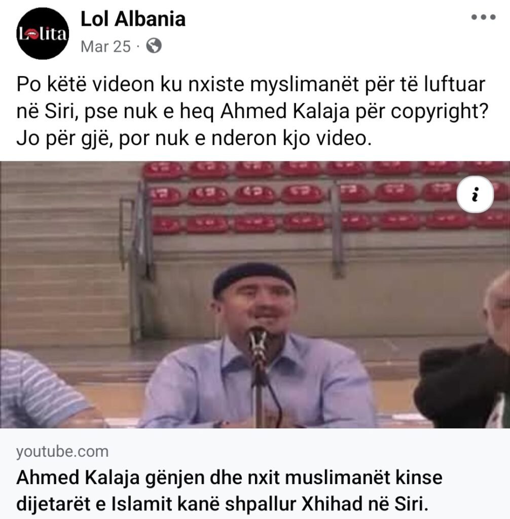 Faqja satirike “Lol Albania”, e njohur më parë si “Lolita”, ka denoncuar një sulm ndaj llogarive të saj në rrjetet sociale, duke pretenduar se pas pezullimit të tyre qëndron imami Ahmed Kalaja.