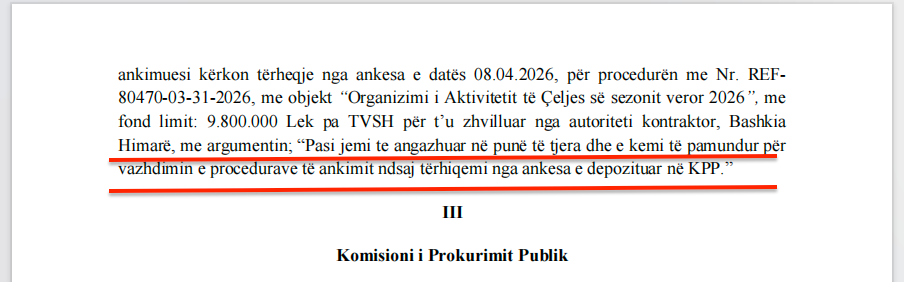 Por, në mënyrë të papritur dhe pa asnjë sqarim teknik, siç skyweb.al ka konstatuar në KPP, kompania është tërhequr nga ankesa.