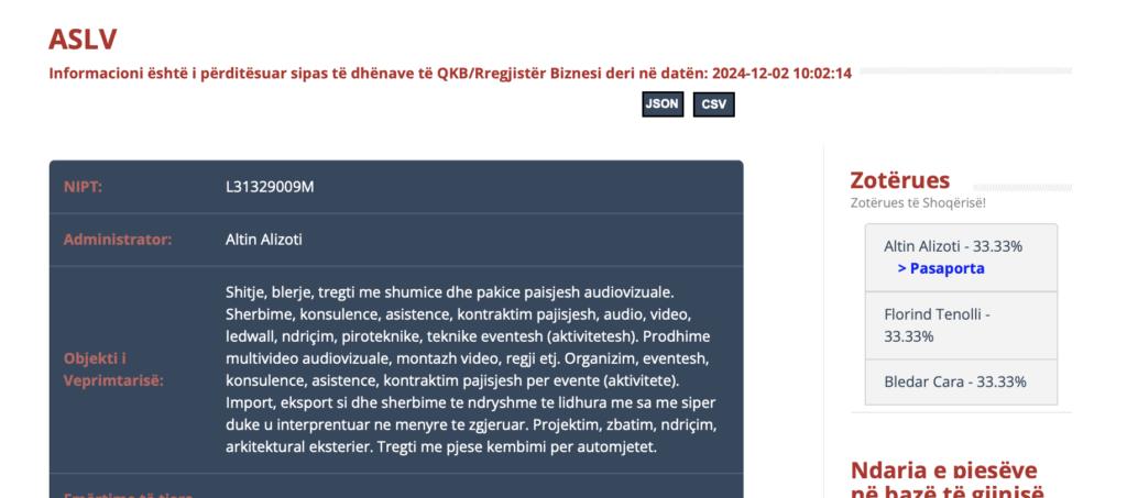 Në këtë kontekst, vëmendja zhvendoset pikërisht te kompania fituese. “ASLV” shpk është një subjekt që operon në fushën e shërbimeve teknike dhe audiovizuale, por që rezulton gjithashtu në fokus të hetimeve të Prokurorisë së Posaçme.